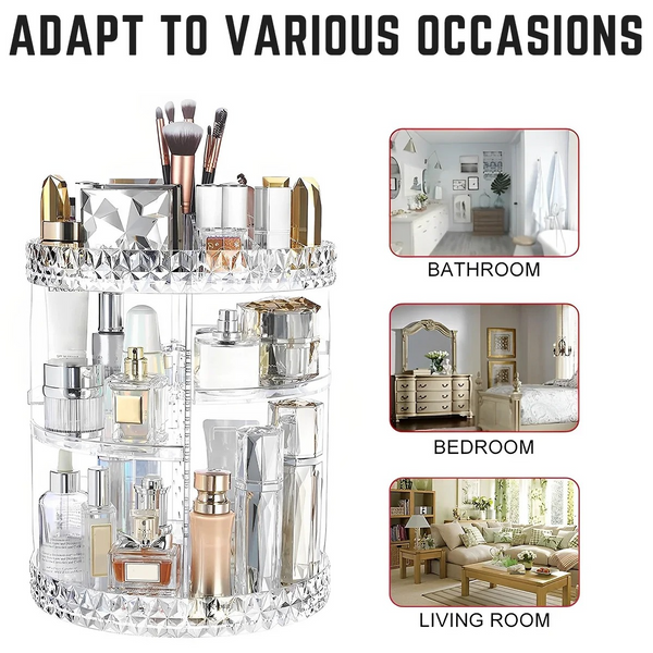 প্রডাক্ট বিবরনঃ 360 ডিগ্রি কসমেটিক্স অর্গানাইজার,ডায়মন্ড শেপের এই অর্গানাইজারটি এবিএস প্লাস্টিক দ্বারা তৈরি,অনেক ভালো মানের এবং মজবুত, প্রায় ১৪ ইঞ্চি উচ্চতার ৬ লেয়ারের এর অর্গানাইজারটি দিয়ে খুব সহজেই অনেক গুলো কসমেটিক্স সাজিয়ে রাখতে পারবেন।এর সব গুলো পার্ট খুলে রাখা যায় আর প্রয়োজন মত লাগিয়ে রাখা যায়,তাই সহজেই বহন যোগ্য ।