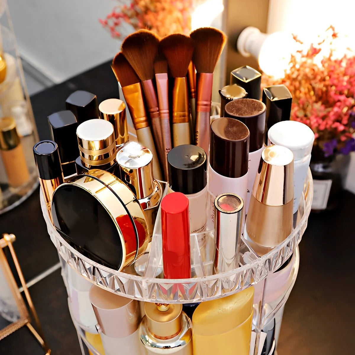 360 ডিগ্রি কসমেটিক্স অর্গানাইজার,ডায়মন্ড শেপের এই অর্গানাইজারটি এবিএস প্লাস্টিক দ্বারা তৈরি,অনেক ভালো মানের এবং মজবুত, প্রায় ১৪ ইঞ্চি উচ্চতার ৬ লেয়ারের এর অর্গানাইজারটি দিয়ে খুব সহজেই অনেক গুলো কসমেটিক্স সাজিয়ে রাখতে পারবেন।এর সব গুলো পার্ট খুলে রাখা যায় আর প্রয়োজন মত লাগিয়ে রাখা যায়,তাই সহজেই বহন যোগ্য ।