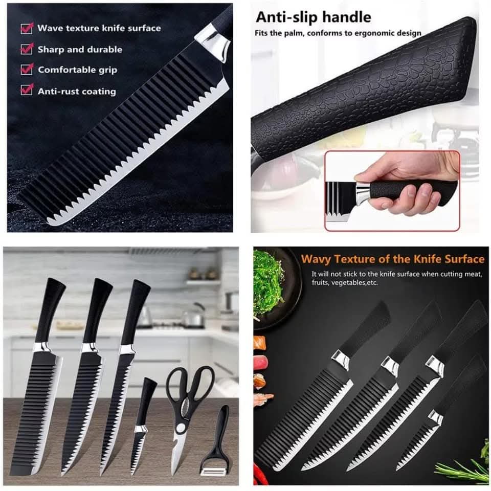 ✅ প্রতিটি চাকুর সাইডে কার্ভ সিস্টেম, তাই সবজি বা ফল কাটার সময়, চাকুতে লেগে থাকবেনা